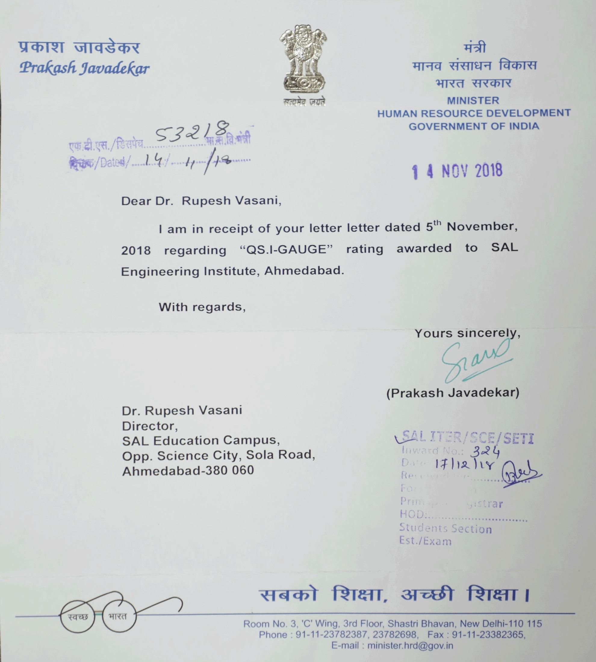 SAL EDUCATION got appreciation from our P.M. shri Narendra Modi sir, C.M. shri Vijay Rupani sir, Prakash Javdeker sir and from our Education Minister shri Bhupendrasinh Chudasama sir.